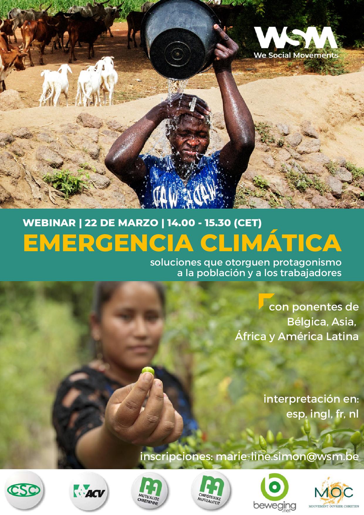 El lunes 22 de marzo, de 14 a 15.30 horas (hora de Bélgica), proponemos un webinar sobre el tema de "Emergencias climáticas".